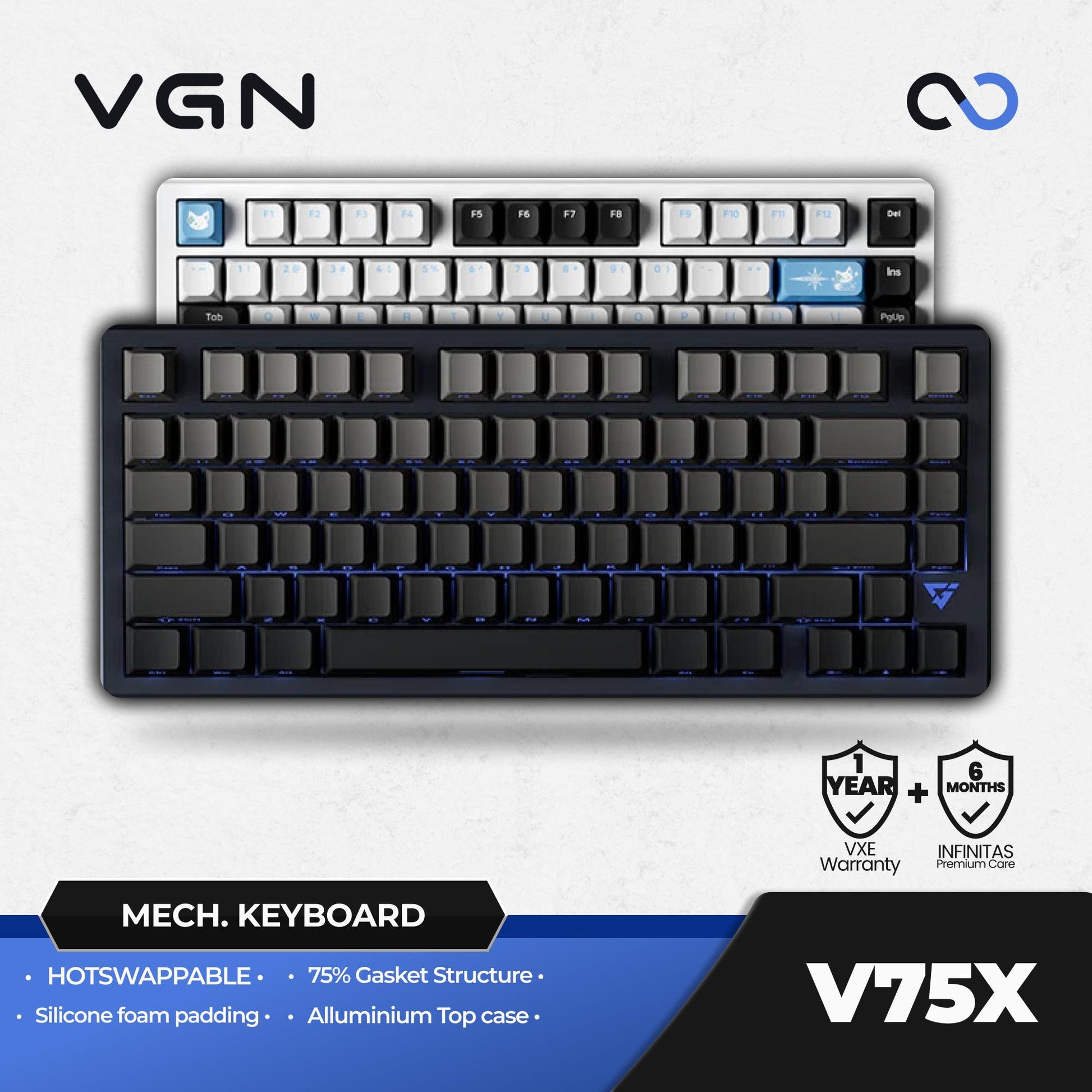 VGN VXE ATK V75X / V-75X Hotswap Gasket Mount 75% Alu Mechanical Keyboard
